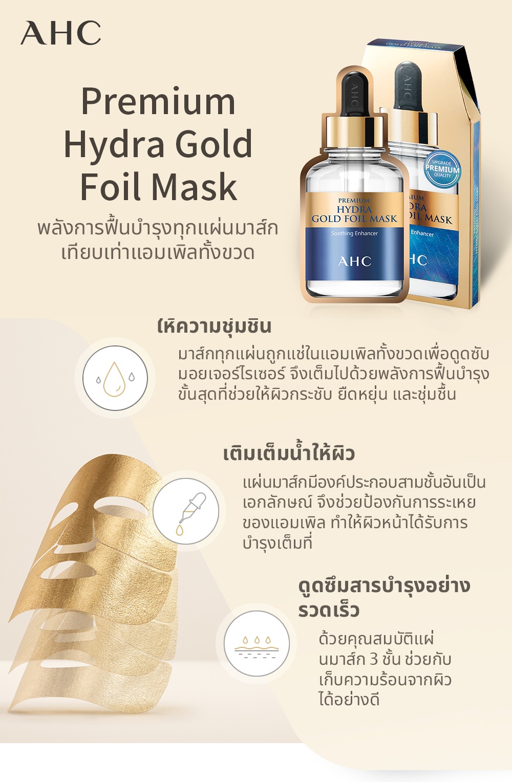 AHC Premium Hydra Gold Foil Mask แผ่นมาส์กทองคำ