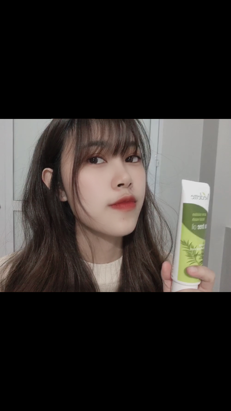 - Thiết kế: tuýp nhựa, màu xanh lá, nhìn cũng tạm - Texture: dạng đặc, màu xanh lá, mùi tràm trà, mùi này hơi khó ngửi. Những hôm mới dùng thì thật sự khô...